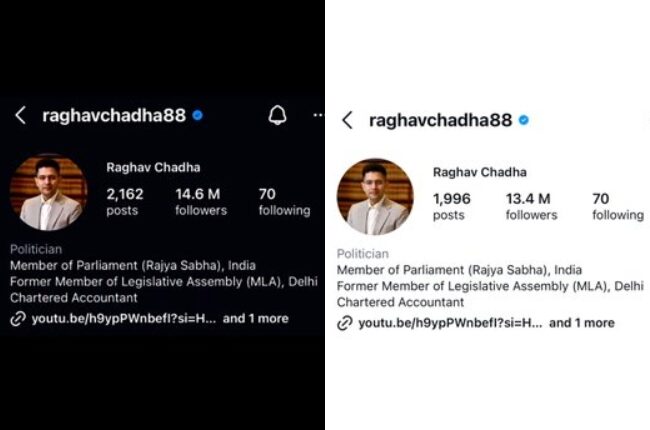 It is being told that on Friday, Raghav Chadha had 1 crore 46 lakh followers on Instagram, which came down to 1 crore 35 lakh by 2 pm on Saturday. This means that in less than a day there was a huge decline in his follower base. Meanwhile, Nationalist Congress Party leader Anish Gawande claimed that Raghav Chadha’s followers decreased rapidly due to the “Gen Z unfollow campaign” run on Instagram.