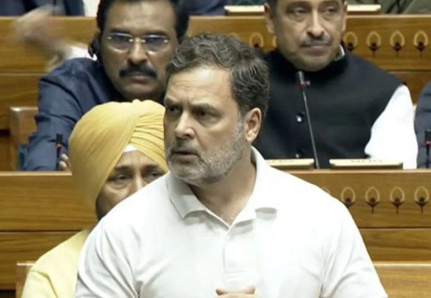 Earlier, participating in the debate on the Union Budget in Lok Sabha, Gandhi said that at the centre of this fight is the concept of AI.