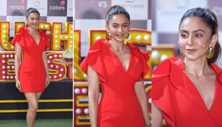 Rakul Preet Singh once again caught everyone’s attention with her style during the film promotion on the sets of TV show Laughter Chef. The actress looked absolutely killer in a red mini dress worth ₹ 37,542, seeing which the heart beat of the fans stopped for a few moments.