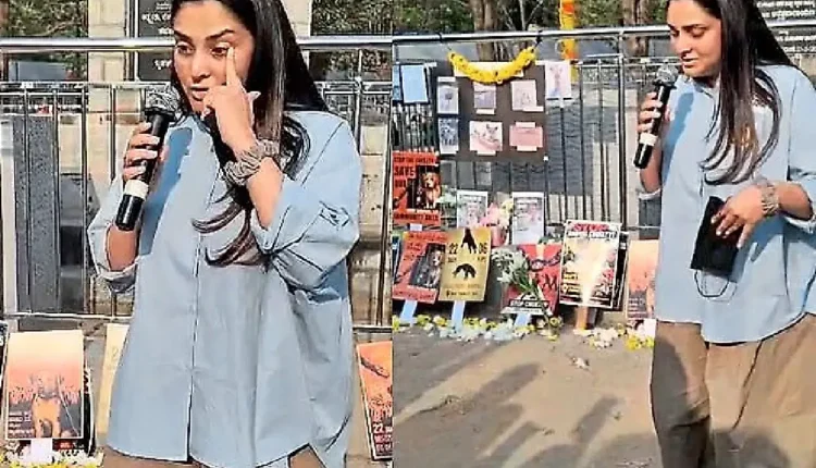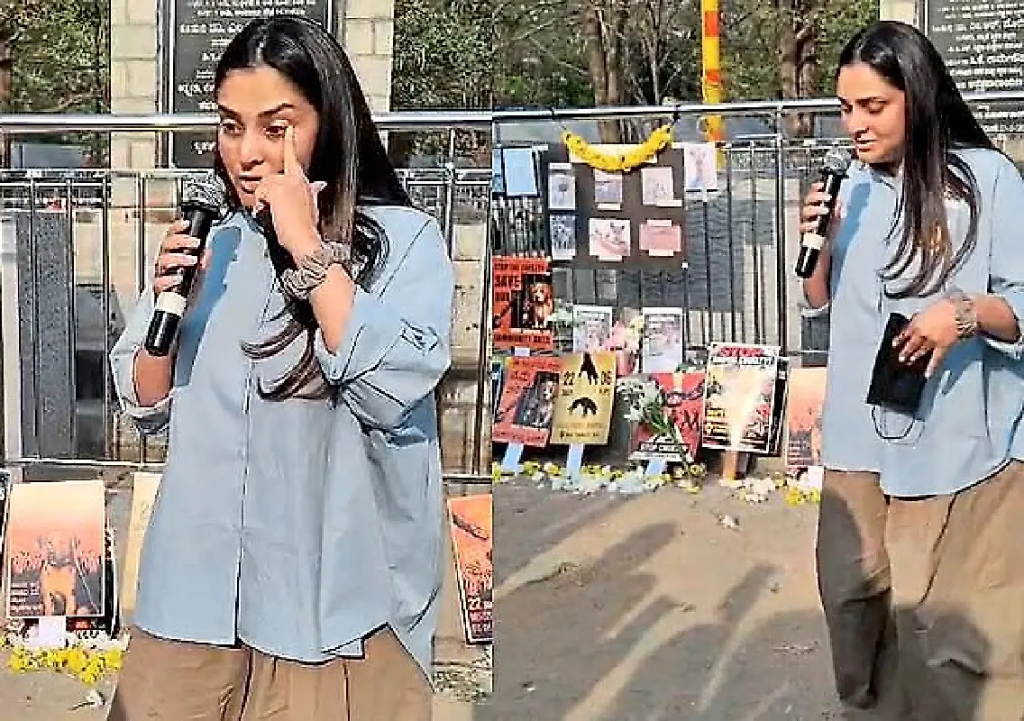 Kannada actor and former MP Ramya became emotional during a protest in Bengaluru over the disappearance of several street dogs from Kaggadasapura.