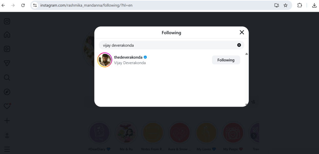 Whereas, if we talk about the following list of both, then Rashmika Mandanna follows 341 people on Instagram, but if we talk about Vijay, then there is no one in Vijay’s following list. Yes, Vijay Deverakonda does not follow anyone on Instagram. He has not even followed Rashmika on Instagram.
