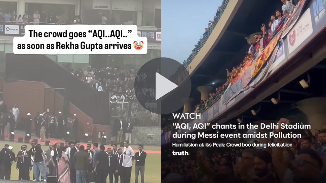 Crowd for Messi shouts “AQI..AQI..” as soon as Delhi CM Rekha Gupta arrives pic.twitter.com/oUyc0yeTAJ