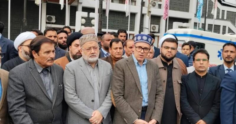 “First of all, the meeting, in one voice, strongly condemned the attack on Iran in which Iran’s Supreme Leader, Ayatollah Ali Khamenei, attained martyrdom,” Omar Abdullah said, adding, “We appealed to the people to hold their protests in a peaceful manner.”