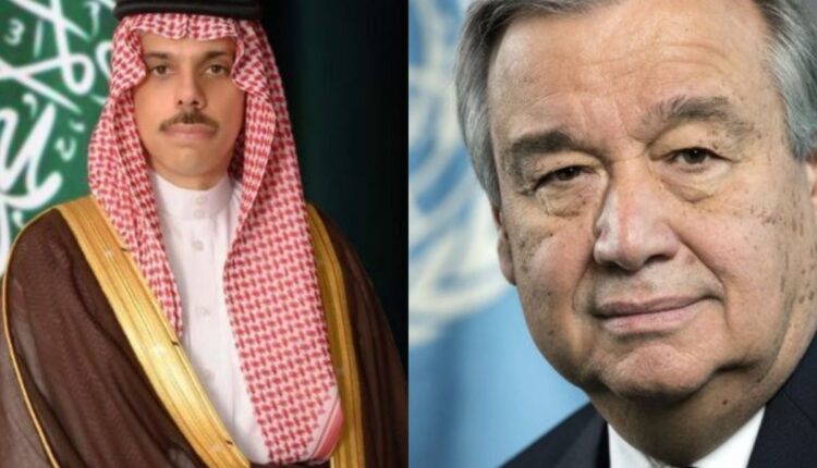 Faisal bin Farhan, the foreign minister of Saudi Arabia, met with Antonio Guterres, the secretary-general of the United Nations, to discuss the “latest developments” and their “implications in the region.”