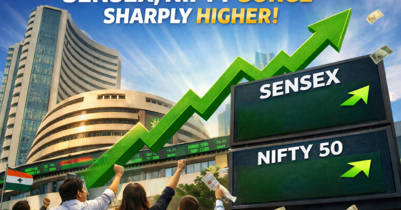 Indian equity benchmarks traded sharply higher on Friday, mirroring gains in global markets despite fresh geopolitical tensions and concerns over the closure of the Strait of Hormuz.
