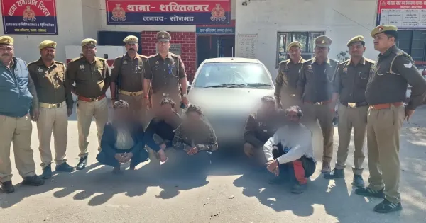 Under the direction of Superintendent of Police Sonbhadra Abhishek Verma, as part of the campaign being run for prevention of crime and arrest of criminals in Sonbhadra district, under the supervision of Additional Superintendent of Police (Headquarters) Sonbhadra Anil Kumar and Area Officer Pipri Harsh Pandey, on 14.02.2026, by the team of Police Station Head Shaktinagar Kamal Nayan Dubey, checking of suspicious person/object/vehicle and search of wanted accused. On the information received from the informer, 05 accused were arrested with stolen car number MP66C1609 (Tata Indica) near Khokhari Pulia (Railway Siding).