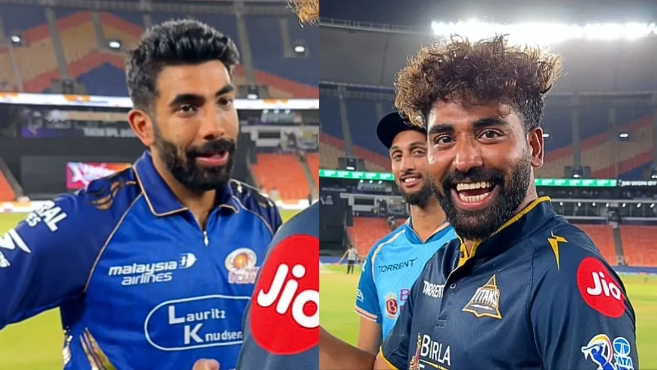 After the match played between Gujarat Titans and Mumbai Indians at Narendra Modi Stadium in Ahmedabad, Indian fast bowler Mohammad Siraj was seen having fun with his teammate Jasprit Bumrah of Team India. After the match, Siraj pulled Bumrah’s leg and teased him and said, ‘Don’t you miss home, Jassi?