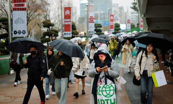 Fans of K-pop boy band BTS, known as ARMY, walk outside the concert venue ahead of the band’s first world‑tour concert “ARIRANG” in more than three years, at Goyang stadium in Goyang, South Korea, April 9, 2026. Photo by Reuters