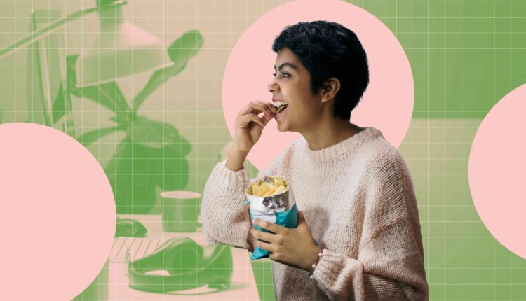 Nutritious snack choices are an important part of a healthy eating pattern. Handfuls of nuts and dried fruits are fiber-packed and can help keep you satisfied—but sometimes you just want a bag of potato chips, and that’s totally OK too.