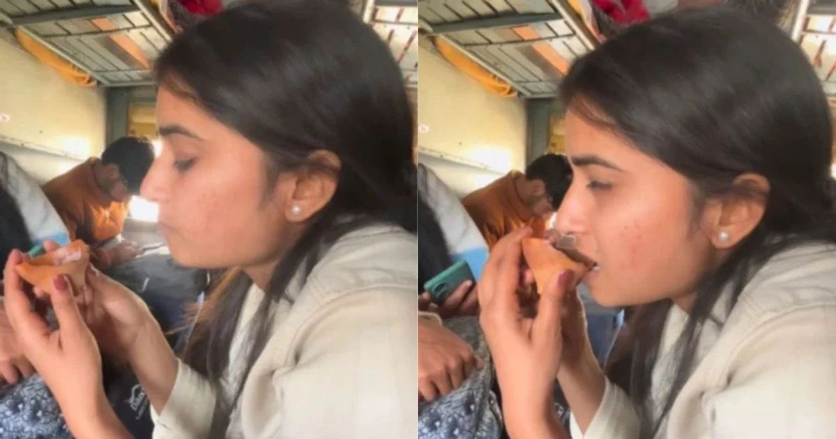 The viral video starts from the general compartment of a train. Passengers are seen sitting on their seats. Meanwhile, a girl is seen in the camera, who has tea with a pot in her hand. She drinks tea comfortably and then suddenly starts eating the same kulhad.
