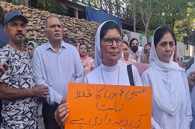 The participants stressed the urgent need to protect the dignity, autonomy and constitutional rights of minor girls belonging to minority communities. Clergy, teachers, students, youth workers, women representatives and civil society members from different backgrounds participated in the meeting. The protesters held banners and placards demanding stricter enforcement of child protection laws and holding accountable those involved in such alleged crimes. Addressing the crowd, Bishop Rahmat highlighted that minor girls are one of the most at-risk groups in society and need immediate and uncompromising protection. He condemned forced marriage and religious conversion as serious violations of human dignity, legal norms and fundamental rights. The bishop said any form of consent obtained through coercion, fear or threat has no legal or moral validity.