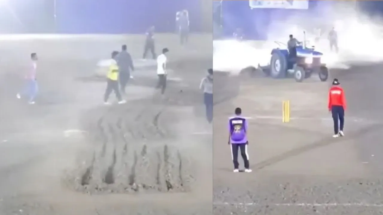 This case pertains to the final match of Jalgaon Rural MLA Cup cricket tournament, which was being telecast live on YouTube. In the middle of the match, suddenly a young man entered the field with a tractor and drove the tractor over the stumps. After this, he completely destroyed the pitch by moving the tractor on it. Big pits were formed on the field, seeing which both players and spectators were surprised. The video of this entire incident is now becoming increasingly viral on social media.