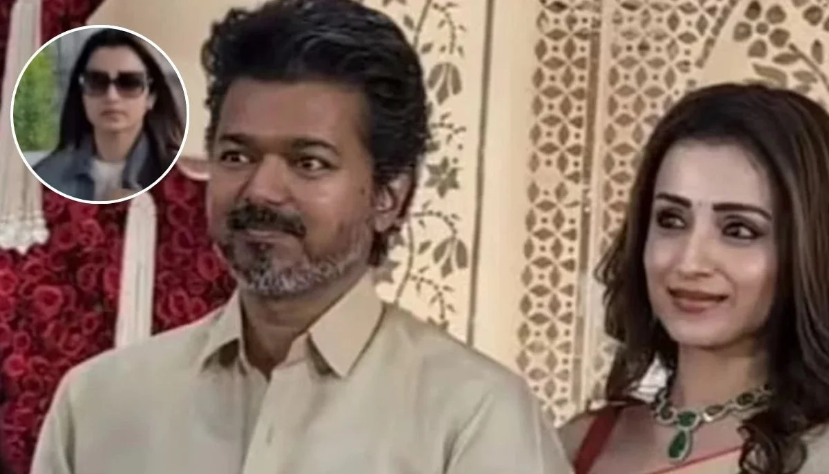 South Indian actress Trisha Krishnan was recently seen at Chennai airport, where reporters asked her questions about her alleged relationship with actor Vijay. Dressed in a white T-shirt, black pants, and a denim jacket, she walked calmly, keeping her sunglasses on, and did not respond to any questions.
