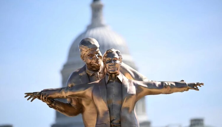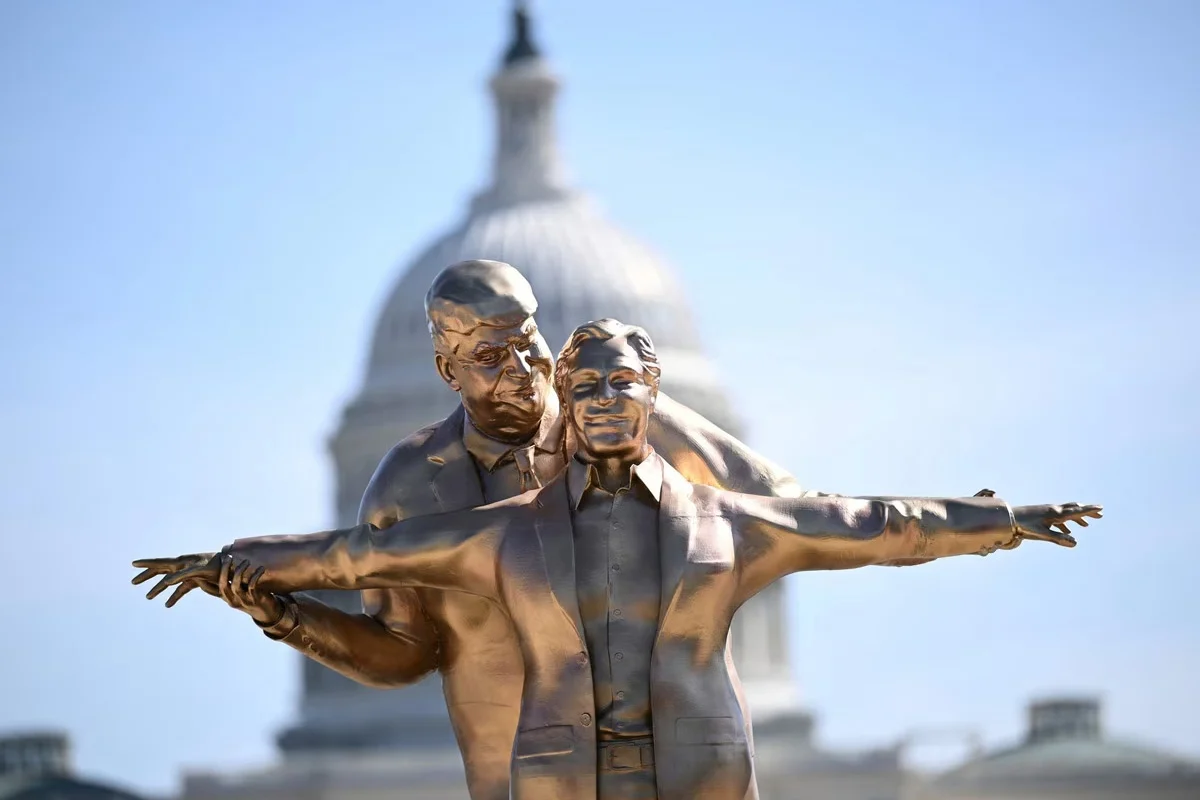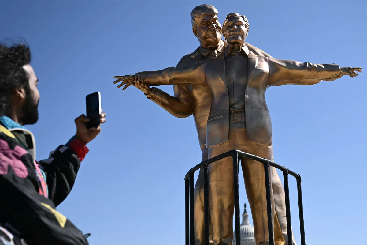 Controversial statue of US President Trump ‘cut off his nose’ sits near the White House. The practice has started around the statue of the US President Donald Trump with the ‘villain’ Epstein of the sex scandal that left a response around the world (Trump-Epstein Statue). It is known that the statue is sitting in Washington DC on the initiative of an unknown American organization. Where it can be seen, sex offender Epstein and President Donald Trump are standing with their hands spread like a lover in the style of the famous scene from the movie Titanic.