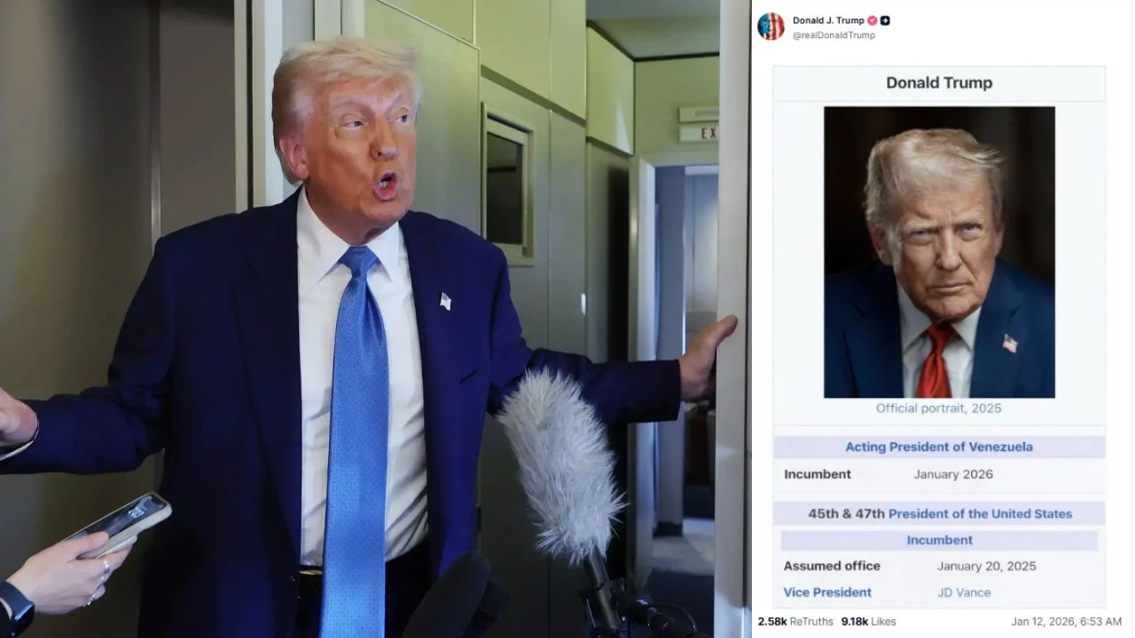 Desk: US President Donald Trump has shared a post on the social media site Truth Social. Trump has created an international stir by sharing the post. In this post, along with Trump’s official picture, it is written that he is currently the ‘Acting President’ of Venezuela. Additionally, he also introduced himself as the 45th and 47th President of the United States. Let us tell you, the US President took charge on January 20, 2025.