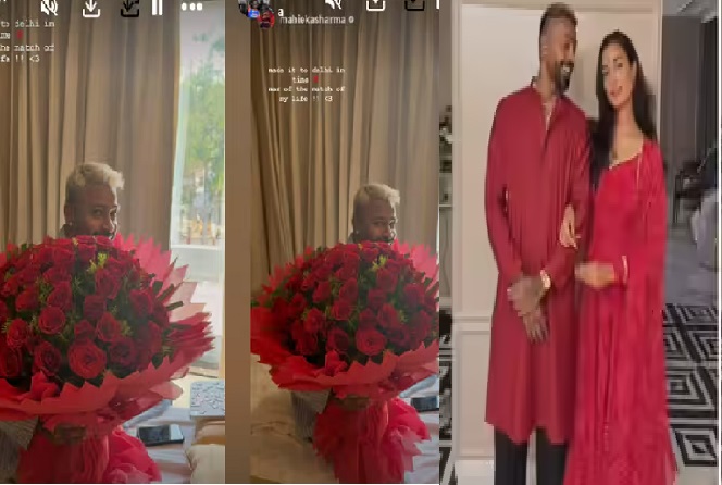 New DelhiOn the occasion of Valentine’s Day, Indian cricketer Hardik Pandya was given a special surprise by his girlfriend Mahika Sharma. After reaching Delhi, Mahika gifted a big rose bouquet to Hardik, the picture of which is going viral on social media. In the Instagram story, Mahika wrote, “I have come to Delhi on time. Man of the match of my life.”