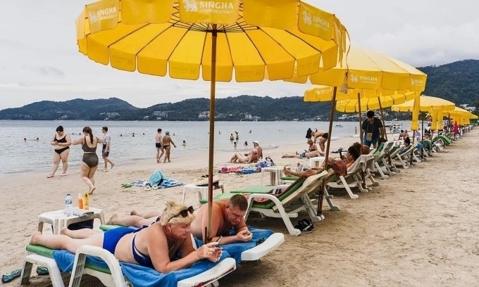 Tourists relax along Patong Beach in Phuket, Thailand. Photo by AFP