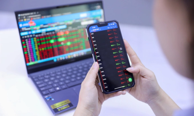 An investor looks at stock prices on a smartphone at a brokerage in Ho Chi Minh City. Photo by VnExpress/Quynh Tran