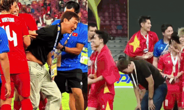 The scenes leave viewers amused yet cringing. Although Vietnam’s U23 squad is well accustomed to winning trophies, their victory-celebration technique still leaves something to be desired. Kim’s moments of glory are often paired with a jolt of pain, as if his back has memorized each title win through repeated impact.