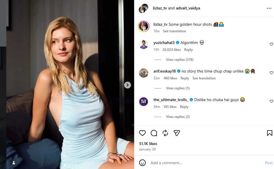 Lizlaz, a Germany-based influencer known for her glamorous content, suddenly became a trending name online after the alleged interaction. Netizens rushed to her profile, digging up the post and sharing it widely, proving yet again how even the smallest celebrity action can trigger massive digital curiosity.