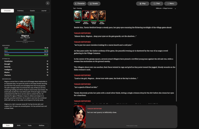 For players, Voyage’s platform offers a range of experiences across different genres, from cozy adventures to more hardcore quests. Since it’s text-based, players read along with the story (with audio narration available) and type how they want their character to act.
