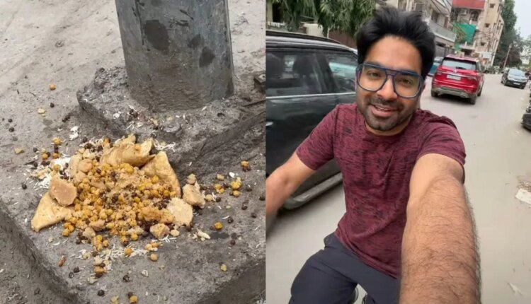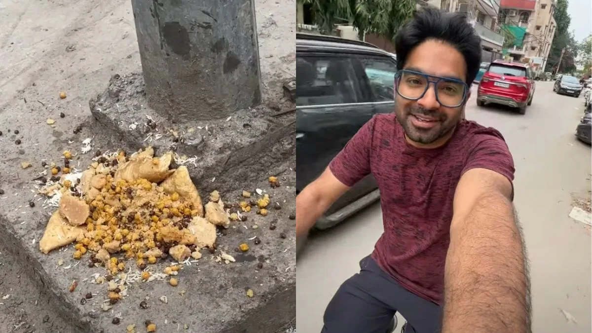 While riding around his area, Vaibhav Malik started noticing kanjak food at several corners of the area. There were untouched plates of halwa, puri, and chana dumped on roadsides, disposable plates tossed near walls, and shockingly, heaps of prasad lying around peepal trees. In the video, he points at the mess and says, “Look at this condition. Our mothers wake up early and cook with so much devotion, and this is what happens.”