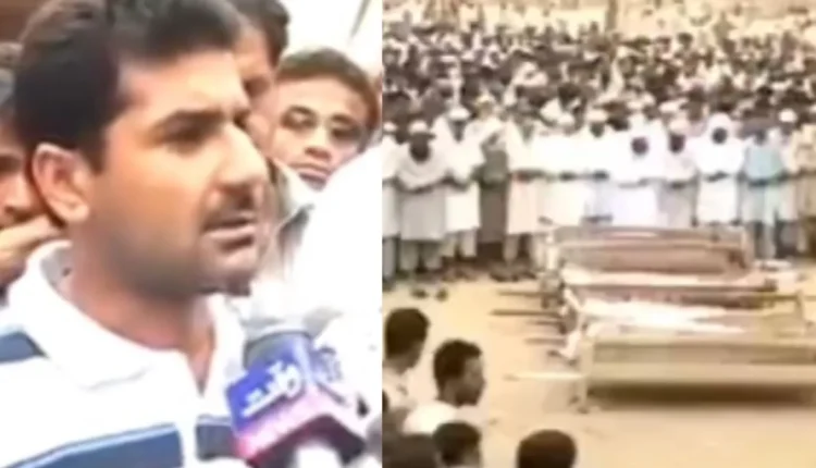 The 11-second edit opens with what appears to be archival TV news from Karachi. A man in a striped polo shirt, surrounded by a crowd and microphones, speaks angrily to reporters. English subtitles translate his words: “We will go to the High Court, Supreme Court and appeal with Mr. Zardari that he should pay attention towards this case and take action against Chaudhary Aslam.”