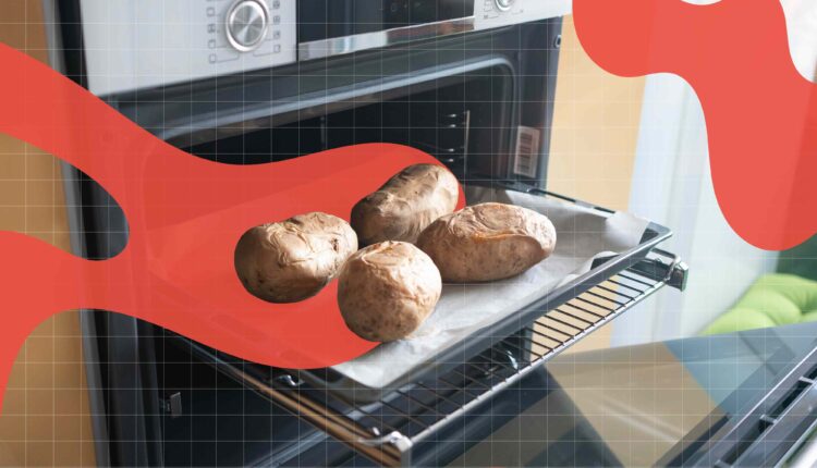 If your oven has a convection setting, use it. “I like to use the convection oven mode on the oven to circulate hot air around the potato, which helps dry out, crisp and blister the skin of the potato,” says Karatassos. “The convection mode also helps achieve an evenly cooked skin and fluffy interior.”