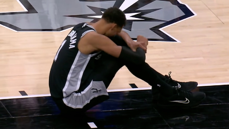 It all started in the second quarter, following a midcourt collision with Paul George. Wembanyama was receiving a pass in transition when the two made hard contact.