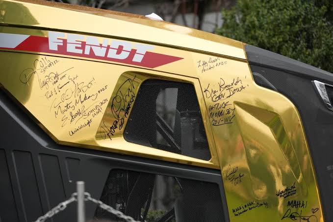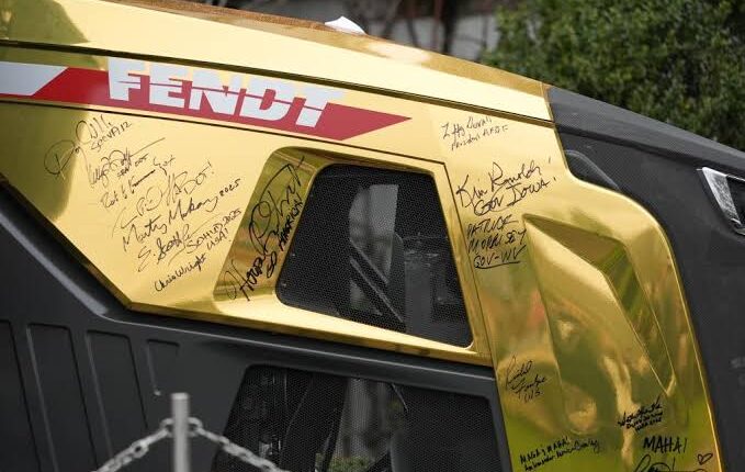 The choice of a gold finish gave the tractor a distinctive appearance, turning it into a focal point for attendees and media coverage alike. It also reinforced the event’s blend of policy messaging and visual storytelling.