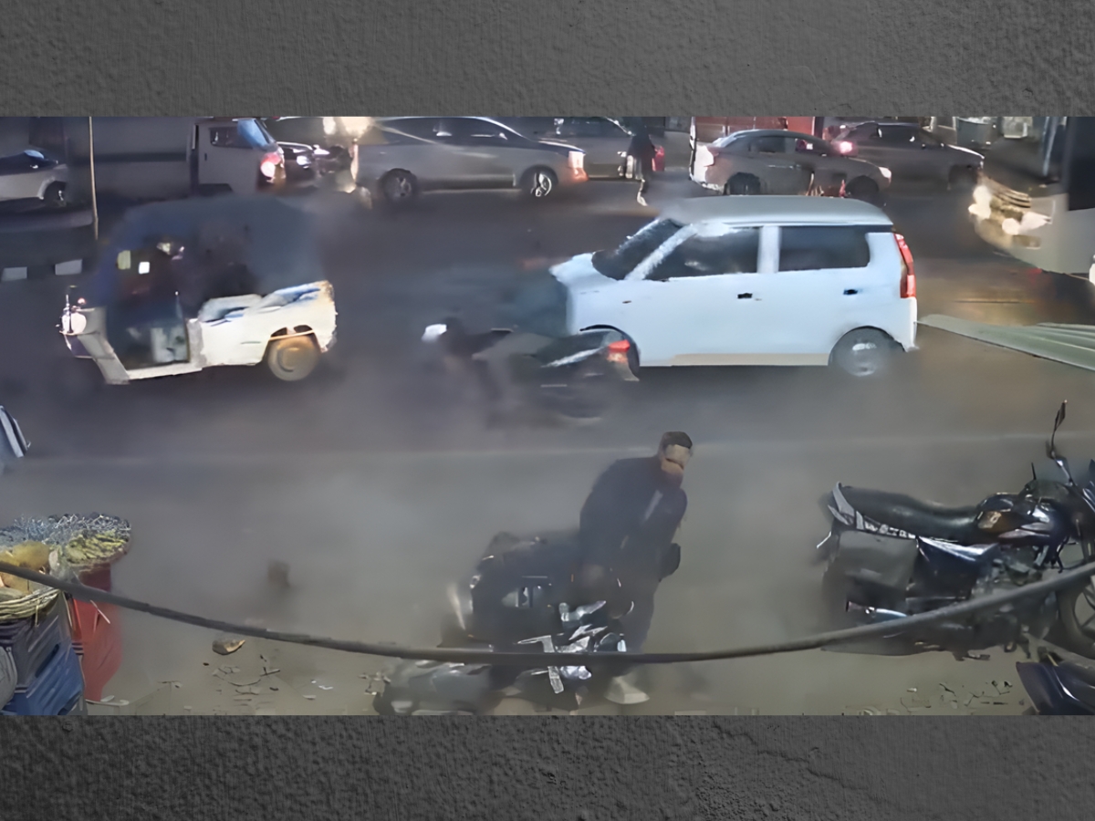 CCTV footage from the area shows the car ramming into a motorcycle on which a man was seated, causing him to fall. Following the collision, the vehicle veered toward the roadside and ploughed into several people standing nearby, including a group at a chaat stall.