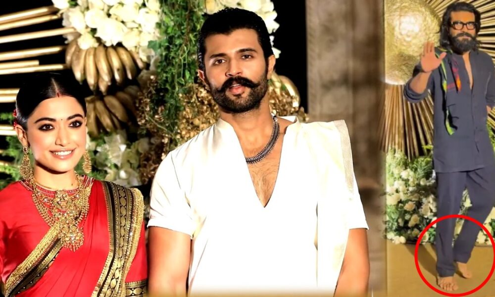 Many big stars of the South Film Industry attended the wedding reception of Vijay Deverakonda and Rashmika Mandanna held on Wednesday night in Hyderabad. The grand celebration was completely star-studded, but the most talked about entry of the evening was that of superstar Ram Charan. Ram Charan arrived at the reception with his wife Upasana Kamineni Konidela. On this special occasion, both of them were wearing all-black outfits. However, what caught people’s attention the most was that Ram Charan was seen barefoot throughout the ceremony.