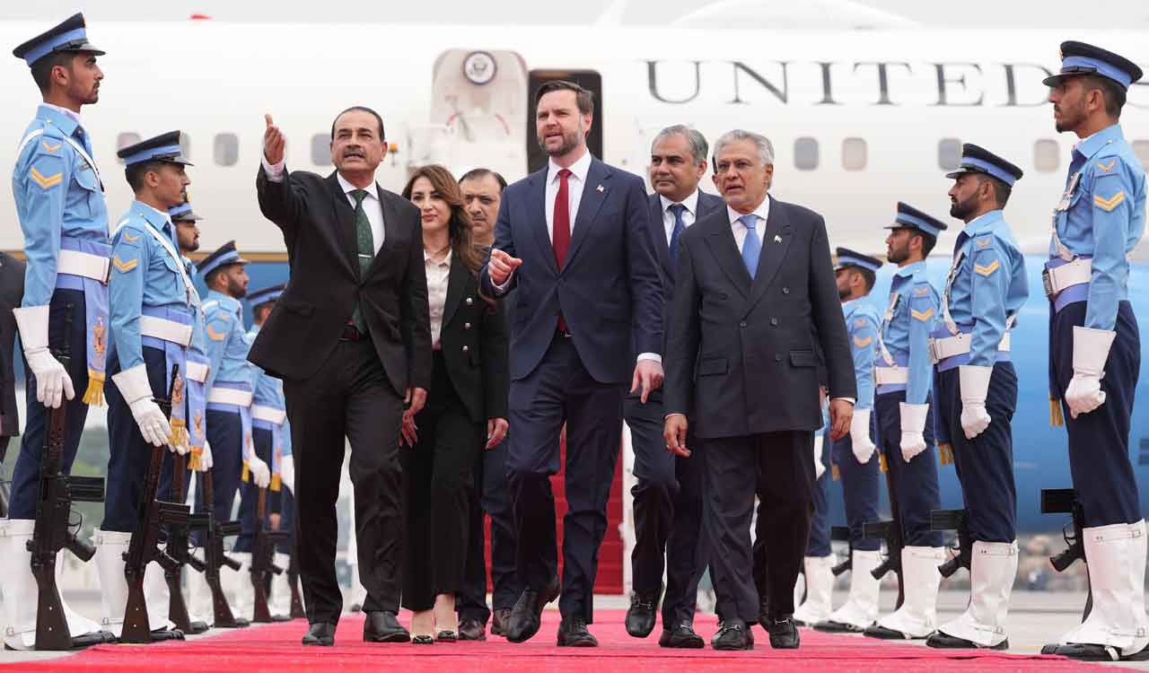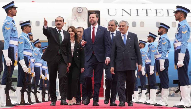 US Vice President JD Vance, centre, walks with Pakistans Chief of Defence Forces and Chief of Army Staff Field Marshall Asim Munir, left, and Pakistani Deputy Prime Minister and Foreign Minister Mohammad Ishaq Dar after arriving for talks with Iranian officials in Islamabad, Pakistan, on April 11, 2026. Photo: AP