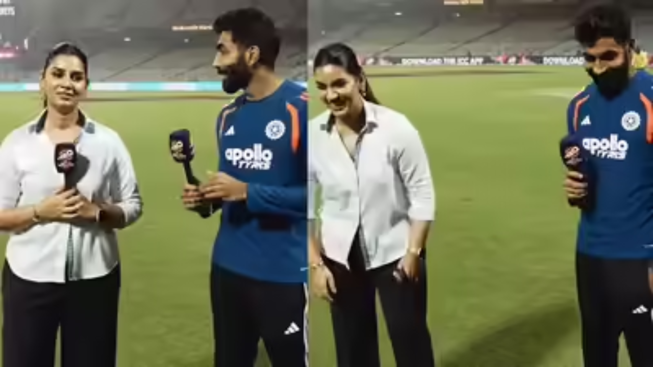 Sanjana Ganesan came to the ground to interview husband Jasprit Bumrah while acting as a presenter for the ICC after the match. A ‘cute moment’ was seen between the two even before the interview started. Bumrah was stumbling while pronouncing the English word Subscribe. Realizing this, Sanjana started giving him lessons on how to pronounce the word properly in front of the camera. Bumrah also tried to pronounce the word like an obedient student listening to his wife’s instructions, the video of which is currently going viral.