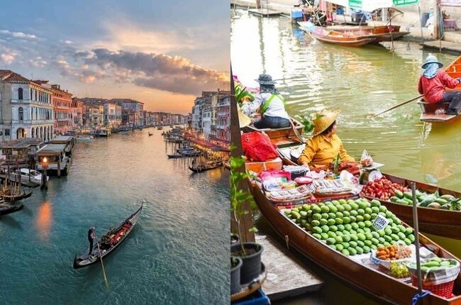 Bangkok, Thailand): Bangkok city is famous all over the world for its floating market. The ‘Damano Saduak’ area here is world famous for its ‘floating markets’. In this city, everything from fruits, vegetables to clothes is sold on boats. Even today, a large part of this city is connected to the network of canals.